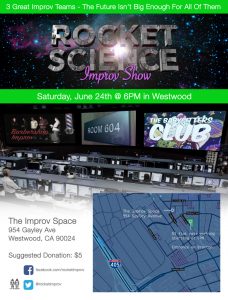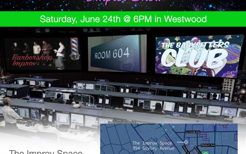 The third Rocket Science show will have Room 604 joined by Barbershop Improv and The Babysitters Club. It’s on Saturday, June 24th at 6PM at The Improv Space in Westwood.