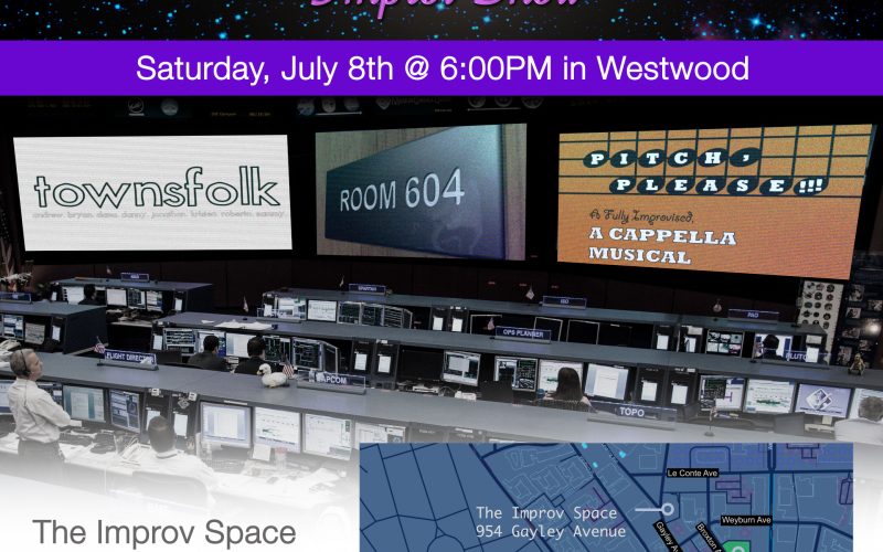 The fourth Rocket Science show will have Room 604 joined by Pitch, Please and Townsfolk. It’s on Saturday, July 8th at 6PM at The Improv Space in Westwood.